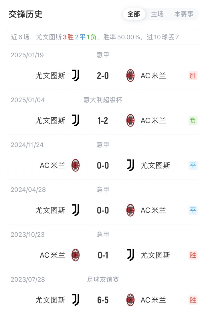 尤文联赛3胜2平积11分,近期各赛事4连平;米兰联赛4胜1负积12分,近期各赛事5连胜。尤文联赛对阵米兰已连续4场不败(2胜2平)。